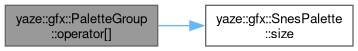 References palettes, and yaze::gfx::SnesPalette::size().