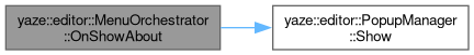 References yaze::editor::PopupID::kAbout, popup_manager_, and yaze::editor::PopupManager::Show().