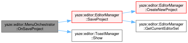 References editor_manager_, yaze::editor::kError, yaze::editor::kSuccess, yaze::editor::EditorManager::SaveProject(), yaze::editor::ToastManager::Show(), and toast_manager_.