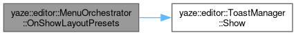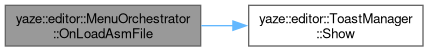 References yaze::editor::kWarning, yaze::editor::ToastManager::Show(), and toast_manager_.