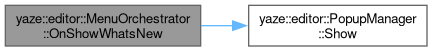 References yaze::editor::PopupID::kWhatsNew, popup_manager_, and yaze::editor::PopupManager::Show().