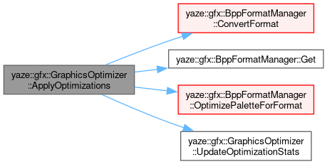 References yaze::gfx::BppFormatManager::ConvertFormat(), yaze::gfx::BppFormatManager::Get(), yaze::gfx::OptimizationResult::memory_saved, yaze::gfx::OptimizationResult::message, yaze::gfx::BppFormatManager::OptimizePaletteForFormat(), yaze::gfx::OptimizationResult::sheet_recommendations, yaze::gfx::OptimizationResult::success, and UpdateOptimizationStats().