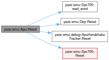 Referenced by yaze::emu::Snes::Reset(), yaze::emu::ApuDspTest::SetUp(), yaze::emu::ApuIplHandshakeTest::SetUp(), and yaze::emu::TEST().