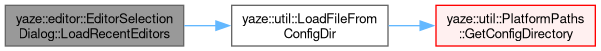 References kMaxRecentEditors, yaze::editor::kSettings, yaze::util::LoadFileFromConfigDir(), and recent_editors_.
