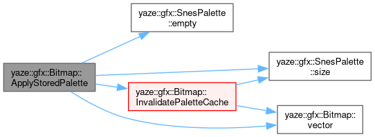 Referenced by ApplyStoredPalette(), Create(), InvalidatePaletteCache(), mutable_palette(), operator=(), palette(), Reformat(), SetPalette(), and SetPaletteWithTransparent().