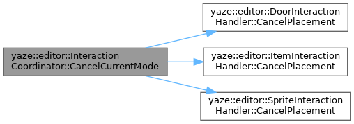 References yaze::editor::DoorInteractionHandler::BeginPlacement(), yaze::editor::ItemInteractionHandler::BeginPlacement(), yaze::editor::SpriteInteractionHandler::BeginPlacement(), CancelCurrentMode(), current_mode_, door_handler_, item_handler_, PlaceDoor, PlaceItem, PlaceSprite, Select, and sprite_handler_.