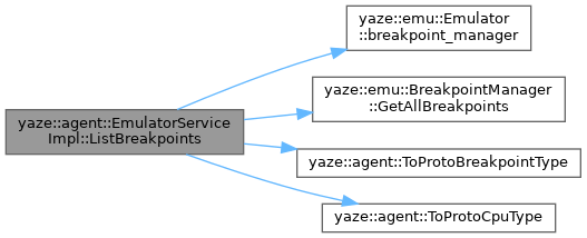 References yaze::emu::Emulator::breakpoint_manager(), emulator_, yaze::emu::BreakpointManager::GetAllBreakpoints(), yaze::agent::ToProtoBreakpointType(), and yaze::agent::ToProtoCpuType().