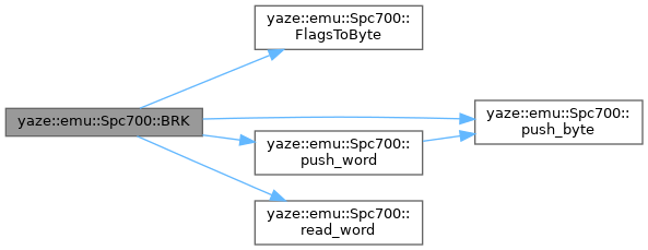References yaze::emu::Spc700::Flags::B, FlagsToByte(), yaze::emu::Spc700::Flags::I, PC, PSW, push_byte(), push_word(), and read_word().