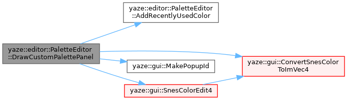 References AddRecentlyUsedColor(), yaze::gui::ConvertSnesColorToImVec4(), current_color_, custom_palette_, edit_palette_index_, yaze::editor::kColorPopupFlags, yaze::gui::EditorNames::kPalette, yaze::gui::MakePopupId(), and yaze::gui::SnesColorEdit4().