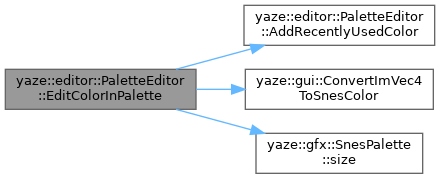 References AddRecentlyUsedColor(), yaze::gui::ConvertImVec4ToSnesColor(), and yaze::gfx::SnesPalette::size().