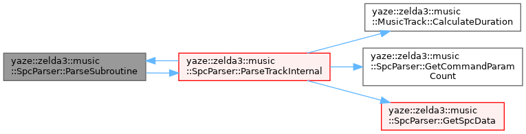 References yaze::zelda3::music::MusicTrack::CalculateDuration(), yaze::zelda3::music::TrackEvent::Command, yaze::zelda3::music::SpcParser::ParseContext::current_bank, yaze::zelda3::music::SpcParser::ParseContext::current_depth, yaze::zelda3::music::MusicTrack::events, GetCommandParamCount(), GetSpcData(), yaze::zelda3::music::MusicTrack::is_empty, yaze::Rom::is_loaded(), IsCommand(), IsDuration(), IsNotePitch(), yaze::zelda3::music::kNoteTie, yaze::zelda3::music::kTrackEnd, yaze::zelda3::music::TrackEvent::MakeEnd(), yaze::zelda3::music::SpcParser::ParseContext::max_parse_depth, yaze::zelda3::music::TrackEvent::Note, ParseSubroutine(), yaze::zelda3::music::SpcParser::ParseContext::rom, yaze::zelda3::music::MusicTrack::rom_address, yaze::zelda3::music::TrackEvent::type, and yaze::zelda3::music::SpcParser::ParseContext::visited_addresses.