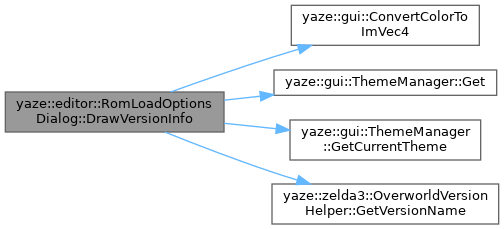 References yaze::gui::ConvertColorToImVec4(), detected_version_, yaze::gui::ThemeManager::Get(), yaze::gui::ThemeManager::GetCurrentTheme(), yaze::zelda3::OverworldVersionHelper::GetVersionName(), ICON_MD_INFO, ICON_MD_UPGRADE, ICON_MD_VERIFIED, yaze::zelda3::kVanilla, yaze::zelda3::kZSCustomV1, yaze::zelda3::kZSCustomV2, yaze::zelda3::kZSCustomV3, and rom_filename_.