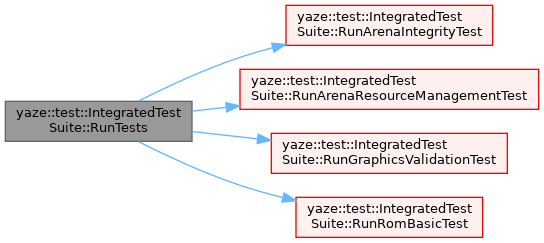References RunArenaIntegrityTest(), RunArenaResourceManagementTest(), RunGraphicsValidationTest(), and RunRomBasicTest().