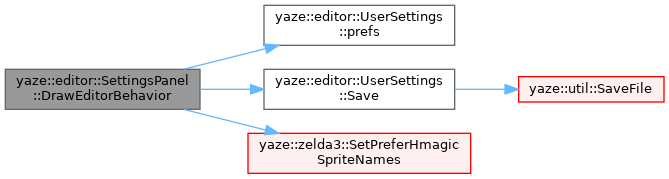 References yaze::editor::UserSettings::Preferences::autosave_enabled, yaze::editor::UserSettings::Preferences::autosave_interval, yaze::editor::UserSettings::Preferences::backup_before_save, yaze::editor::UserSettings::Preferences::default_editor, ICON_MD_EDIT, ICON_MD_HISTORY, ICON_MD_LABEL, ICON_MD_SAVE, yaze::editor::UserSettings::Preferences::prefer_hmagic_sprite_names, yaze::editor::UserSettings::prefs(), yaze::editor::UserSettings::Preferences::recent_files_limit, yaze::editor::UserSettings::Save(), yaze::zelda3::SetPreferHmagicSpriteNames(), and user_settings_.