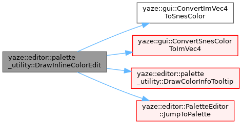 | bool | DrawInlineColorEdit (const char *label, gfx::SnesColor *color, const std::string &group_name, int palette_index, int color_index, PaletteEditor *editor) |