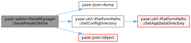 References yaze::Json::dump(), yaze::util::PlatformPaths::GetConfigDirectory(), LOG_ERROR, LOG_INFO, yaze::Json::object(), and presets_.