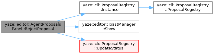 References ICON_MD_CANCEL, yaze::cli::ProposalRegistry::Instance(), yaze::editor::kError, yaze::editor::kInfo, yaze::cli::ProposalRegistry::kRejected, needs_refresh_, proposal_callbacks_, yaze::editor::ProposalCallbacks::reject_proposal, yaze::editor::ToastManager::Show(), toast_manager_, and yaze::cli::ProposalRegistry::UpdateStatus().