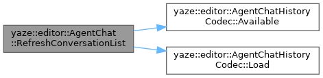 References active_history_path_, yaze::editor::AgentChatHistoryCodec::Available(), conversations_, yaze::editor::AgentChat::ConversationEntry::is_active, last_conversation_refresh_, yaze::editor::AgentChat::ConversationEntry::last_updated, yaze::editor::AgentChatHistoryCodec::Load(), yaze::editor::AgentChat::ConversationEntry::message_count, yaze::editor::AgentChat::ConversationEntry::path, and yaze::editor::AgentChat::ConversationEntry::title.